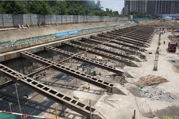 SMW是Soil mixing wall的缩写,该工法是用多轴型钻掘灌溉桩在工程现场向一定深度土层进行钻掘,同时在钻头处喷出水泥系强化剂而与地基反复混合搅拌,在各施工单元之间则采取重叠搭接施工,然后在水泥土混合体未结硬前插入H型钢或钢板作为其应力补强,至水泥结硬,便形成一道具有一定强度和刚度的、连续完整的、无接缝的地下墙体。